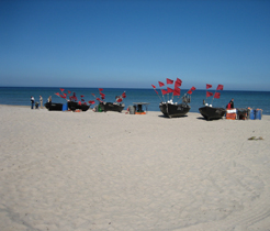 Am kilometerlangen Sandstrand findet man alle Freizeitmöglichkeiten, die einen Badeurlaub ausmachen.