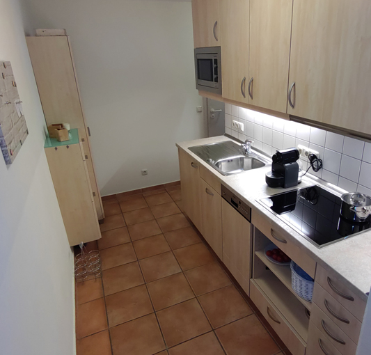 Die maßgeschneiderte Küche mit hochwertigen Geräten, (Geschirrspülmaschine, Induktionskochfeld, Kühlschrank mit Gefrierfach, Mikrowelle) Geschirr und Dunstabzug bietet viel Komfort bei der Zubereitung von Speisen.